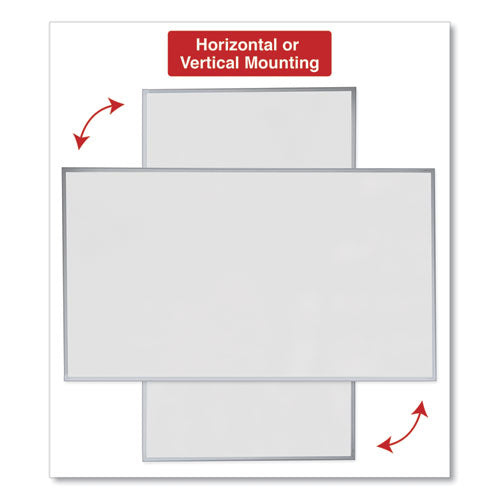 Ultra-durable board that is built to last. Whether you choose to go contemporary with an aluminum frame or traditional with a wood frame, this deluxe dry erase board's classic, low-impact design will blend right in. The board makes it easy to lead your audience's attention to where you want it; on your notes and illustrations. Easy-to-erase, high-quality melamine surface is compatible with all dry-erase markers. Versatile mounting kit allows you to install this board horizontally or vertically to suit your space. Marker/eraser tray can be attached for convenient, close-at-hand supplies storage or removed for a cleaner, minimalistic approach.Package Includes: (1) Marker/Eraser Tray; (1) Mounting Kit