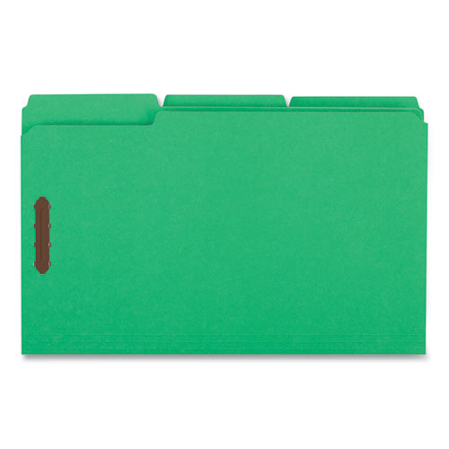 Deluxe Reinforced Top Tab Fastener Folders, 0.75" Expansion, 2 Fasteners, Legal Size, Green Exterior, 50/Box