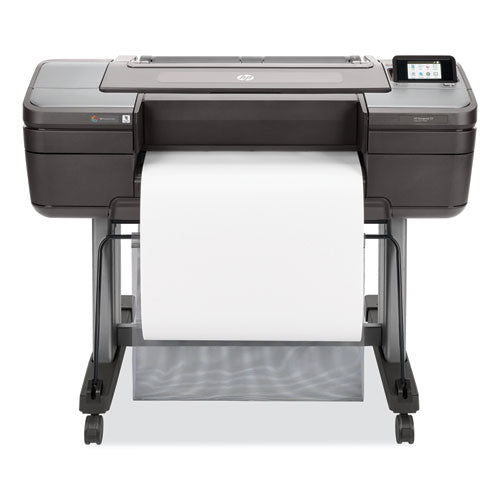 Deliver photo-quality prints 2.5 times faster without losing quality. Cut post-processing time up to 20% with the integrated vertical trimmer. Simplify your workflow with new tools in the HP Applications Center. Dynamic security enabled printer. Only intended to be used with cartridges using an HP original chip. Cartridges using a non-HP chip may not work, and those that work today may not work in the future.Package Includes: Printheads; Introductory Ink Cartridges; Printer Stand; Media Bin; Spindle; 3" Core Adapter; Quick Reference Guide; Setup Poster; Power Cord