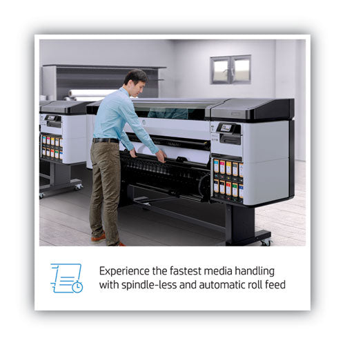This printer achieves the widest gamut in its category with chromatic RGB HP Vivid Photo Inks. Take more jobs—print faster with better quality. Monitor your performance and make data-driven decisions with HP Print Beat. Be more efficient—experience the fastest media handling, spindle-less and automatic roll feed. Easily share media presets remotely, gain visibility over operator routines with HP Configuration Center.Package Includes: 3" Core Adapter; Introductory Ink Cartridges; Maintenance Cartridge; Media Bin; Power Cord; Printer Stand; Quick-Reference Guide; Set-up Poster