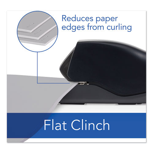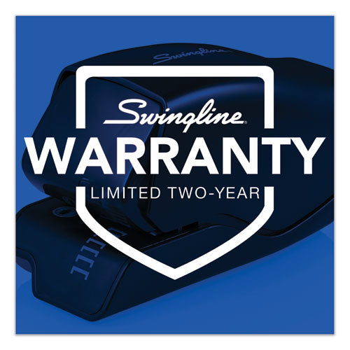 Swingline 502e Desktop Cartridge Electric Stapler is protected by durable plastic housing and is ideal for desktop use, in a mailroom and other office environments. Patented cartridge design includes a new driver head, the most used part of the stapler, with each new cartridge. Each cartridge holds 1,500 staples and can staple up to 25 sheets at once. Convenient spring loaded lid opens upward for easy access to the staple cartridge. LED guide shows where the staple will fasten. Flat clinch tightly flattens the staple reducing papers from curling up at the edges to form neater paper stacks. Extremely quiet and low vibration operation is convenient when having to staple jobs at your desk or in common areas. Stapler includes one staple cartridge.