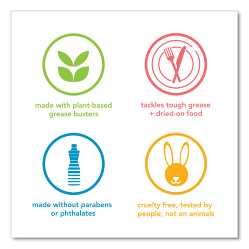 Tackle unpleasant grease and stubborn, stuck-on food with the power of a plant-based dishwashing soap. Formula is made without parabens or phthalates. Contoured shape for easy grip-ability. Streamlined body plus pump uses 35% less plastic than previous packaging. Pleasant scent leaves dishes smelling great. Cruelty free formula. Tested by people, not on animals. Proudly doing business with a purpose.