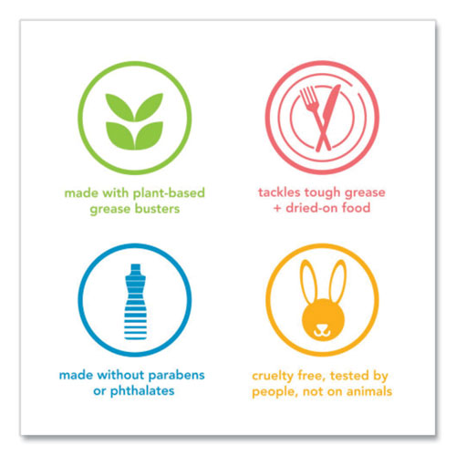 Tackle unpleasant grease and stubborn, stuck-on food with the power of a plant-based dishwashing soap. Formula is made without parabens or phthalates. Contoured shape for easy grip-ability. Streamlined body plus pump uses 35% less plastic than previous packaging. Pleasant scent leaves dishes smelling great. Cruelty free formula. Tested by people, not on animals. Proudly doing business with a purpose.