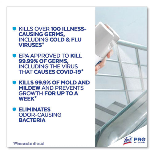 Lysol I.C.™ Disinfectant Spray is a tuberculocidal, bactericidal, virucidal, and fungicidal formula that works on both soft and hard, non-porous surfaces. Help protect patients across a range of healthcare settings with a disinfectant that can kill over 100 different microorganisms. Disinfect frequently touched surfaces across several areas, including waiting rooms, patient exam rooms, resident rooms, and restrooms. Kill 99.9% of viruses and bacteria (including Tuberculosis) when used as directed on hard, non-porous and soft surfaces. The ready-to-use formula allows employees to disinfect and keep moving. Contains a minimal fragrance ideal for disinfection for healthcare settings (4.5x less fragrance than Lysol Brand III Disinfectant Spray).