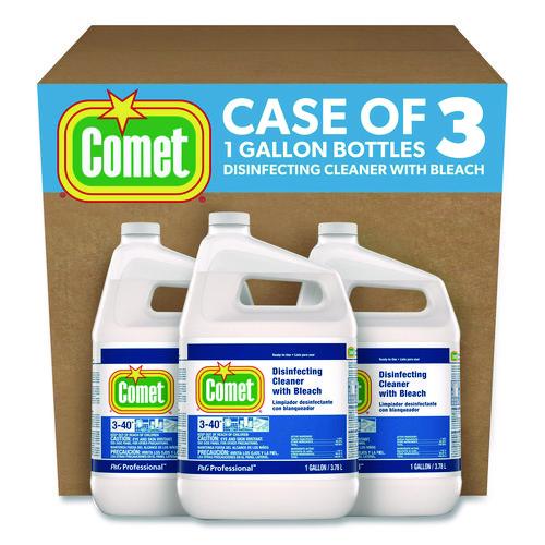 Comet Disinfecting Cleaner With Bleach is a two-in-one all purpose cleaner formula that combines the cleaning power of heavy-duty detergents with the stain-removal power of bleach. A hospital-use disinfectant when used per label instructions, It is effective as a disinfectant in 60 seconds against Hepatitis A and C, Norovirus, and 39 other microorganisms (See EPA master label for full list of organisms and contact times. Not yet approved in CA). Comet Disinfecting Cleaner With Bleach contains no abrasives and uses remarkable cleaning technologies that may be used to clean customer and employee restrooms, tracked-in dirt and scuffmarks, kitchen-area stains, plastic trash containers, greasy equipment containers and other surfaces.
