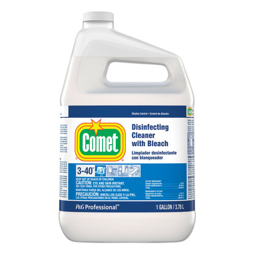 Comet Disinfecting Cleaner With Bleach is a two-in-one all purpose cleaner formula that combines the cleaning power of heavy-duty detergents with the stain-removal power of bleach. A hospital-use disinfectant when used per label instructions, It is effective as a disinfectant in 60 seconds against Hepatitis A and C, Norovirus, and 39 other microorganisms (See EPA master label for full list of organisms and contact times. Not yet approved in CA). Comet Disinfecting Cleaner With Bleach contains no abrasives and uses remarkable cleaning technologies that may be used to clean customer and employee restrooms, tracked-in dirt and scuffmarks, kitchen-area stains, plastic trash containers, greasy equipment containers and other surfaces.