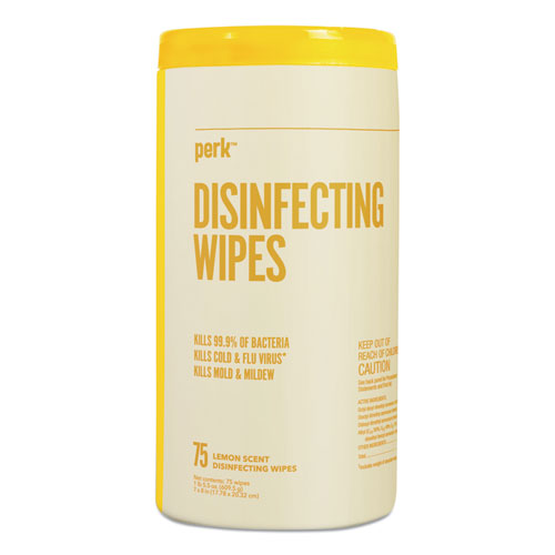 Disinfecting Wipes, 7 x 8, Lemon, White, 75 Wipes/Canister