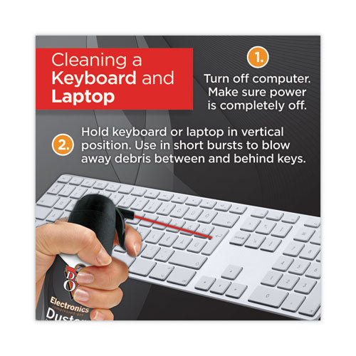 Provides potent dust-removing power for practically any task. Ideal for cleaning technology like keyboards, laptops and CPUs. Also great for cleaning items in the home such as collectibles, window blinds, lamp shades, craft projects and sewing machines. Includes extension tube to get in hard to reach places. Contains a bitterant to help discourage inhalant abuse.