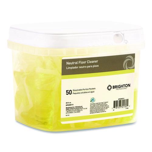 Brighton Professional Dissolvable Floor Cleaner Packets offer the convenience and safety of a ready-to-use chemical, at a much lower cost. The Brighton Professional™ Dissolvable Portion Packet system combines a concentrated cleaning solution within a water-soluble film. No need to cut, tear, or pour! Simply drop a whole packet into a bucket or scrubber and add cold water. It dissolves in minutes, creating a precisely diluted mixture of cleaning solution without spills, mess, or waste.