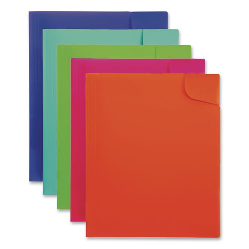 Four pockets help keep complex presentations or active projects organized. Allows you to separate and store materials without punching. Pocket-locket feature secures papers in place while handy pocket tabs quickly identify contents. Durable poly material protects documents and stays attractive longer.