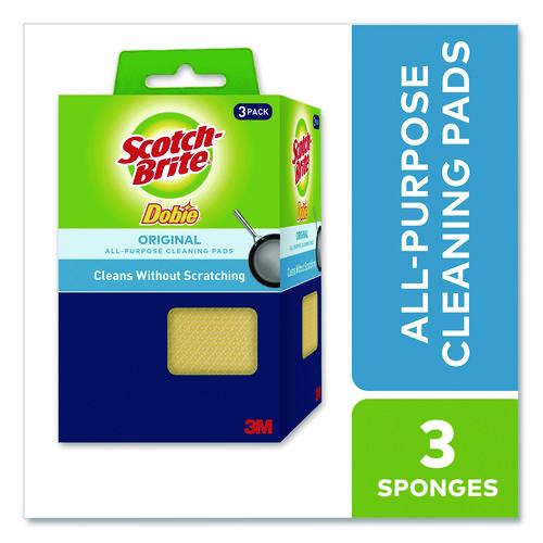 Dobie All-Purpose Cleaning Pad, 4.3 x 2.6, 0.5" Thick, Yellow, 3/Pack, 8 Packs/Carton