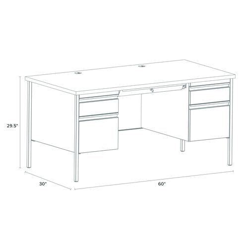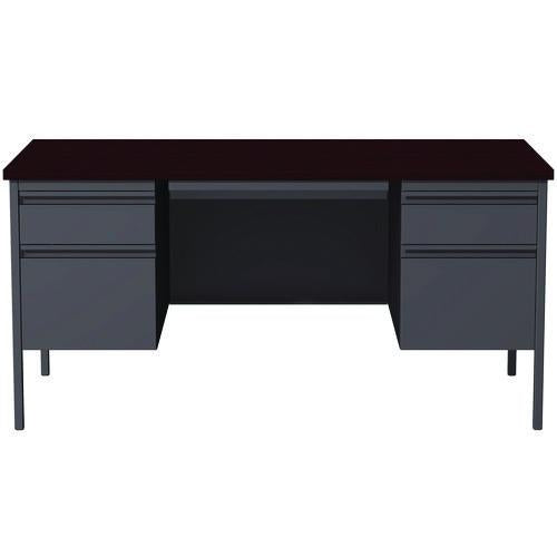 Double Pedestal Steel Desk, 60" x 30" x 29.5", Mahogany/Charcoal, Charcoal Legs