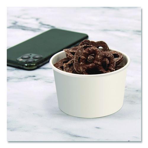 Whether you're dishing up hot or cold meals, these durable paper food containers help you put your best food forward. Package soup, pasta, frozen yogurt and more with confidence. The wide mouth and squat profile make it easy to fill and enjoy. Worry less about unexpected messy situations, like leaks and excessive condensation—this container has a moisture-resistant lining. Ensure freshness and cleanliness when paired with a compatible lid (sold separately). From food delivery to ice cream shop takeout, these containers have you covered.Note: This is a non-returnable item.