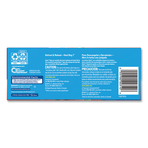 Sturdy, disposable bags are easy to open and easy to fill. Their unique interlocking zipper seals securely; locks in freshness and protects foods from drying. Designed for saving space while storing food, portion control, food preparations and transportation. You can write on the labels for easy identification and date coding. Dispensing cartons are color-coded for kitchen organization. Bags are microwave safe and manufactured to meet FDA requirements.