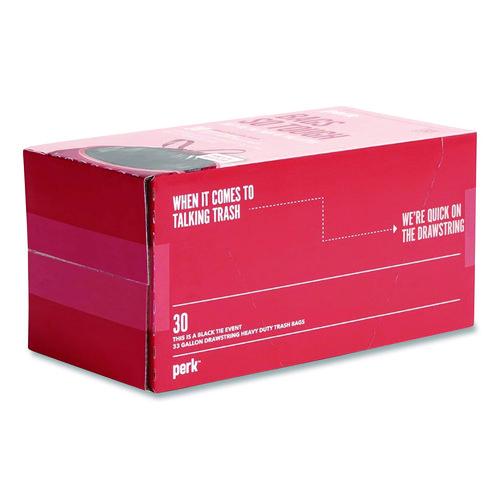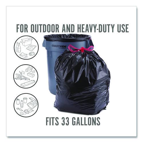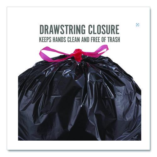 So tough, they're the pick of the litter. These versatile, heavy-duty trash bags are ideal for either garbage-collection or lawn-maintenance applications. A drawstring top makes it easy to line receptacles and a cinch to close these bags up and cart them off, even after you've filled them to the brim. Extra-thick, low-density resin construction and a flat-seam design provide excellent resistance against breaks, tears and leaks. Handy packaging enables convenient, one-handed dispensing.