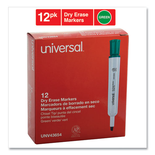 Dry Erase Marker, Broad Chisel Tip, Green, Dozen
