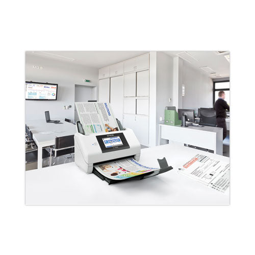 Fast, versatile and powerful, the DS-790WN combines network connectivity, enhanced security features and PC-free scanning so you can manage your business solutions with confidence. Designed for reliability plus ease of use, the DS-790WN delivers high-quality scans up to 45 ppm/90 ipm with a peak daily duty cycle up to 7,000 sheets, one-pass duplex scanning and a high-volume 100-page ADF that accommodates business and ID cards as well as extra-long pages up to 240". The intuitive 4.3" color LCD touchscreen allows you to access multiple jobs and email or scan to a USB drive, your network or Cloud storage services without the need for a computer. Gain full control of your documents with individual user authentication via the touchscreen or an optional card reader, including customizable scan settings and access to personal usage records.Package Includes: Start Here Poster; USB 3.0 Cable; AC Adapter; Power CableNote: This is a non-returnable item.