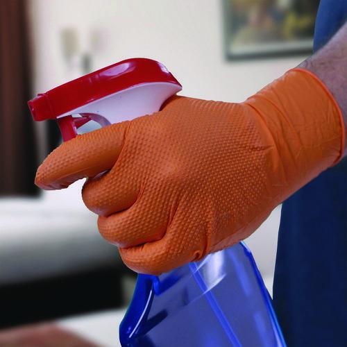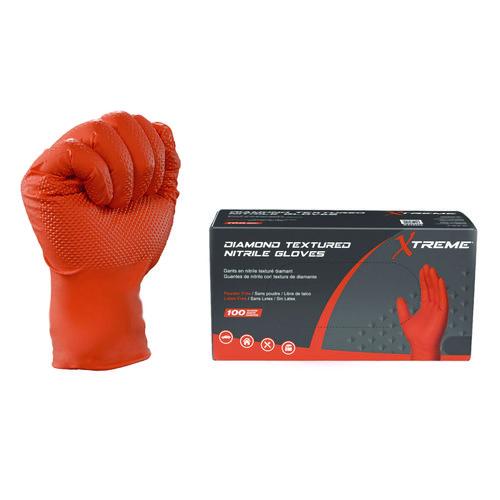 Xtreme by AMMEX® DT Industrial Nitrile Disposable Gloves are diamond textured for an enhanced grip on tools and machinery. Their hi-vis orange color stands out in dark environments to keep hands in plain sight. At 6 mils thick, Xtreme gloves resist punctures as well as permeation by chemicals. They are good for a variety of uses, from automotive to food processing, janitorial/sanitation to manufacturing and more.