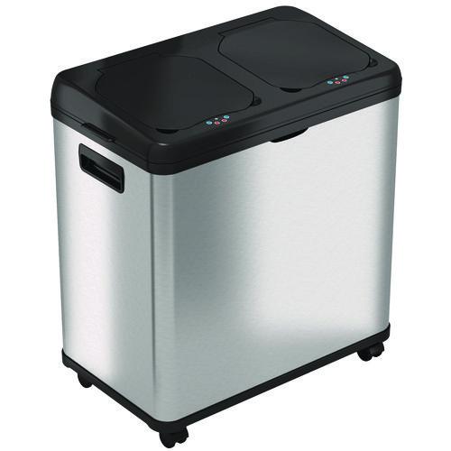 Streamline your waste management with our stainless steel dual compartment sensor recycle bin and trash can. Featuring 100% touch-free automatic lids, this bin ensures a hygienic and convenient disposal experience. With dual independent inner buckets for separate collection of trash and recycling, it simplifies organization in hospitality, medical, multi-family residential, and retail environments. Removable caster wheels provide easy mobility, while side handles allow for effortless lifting and moving. The durable stainless steel body and ABS plastic lid combine style with functionality. Powered by four D size batteries (not included) or an optional AC adapter (sold separately), this bin is perfect for maintaining cleanliness in high-traffic areas.Note: This is a non-returnable item.