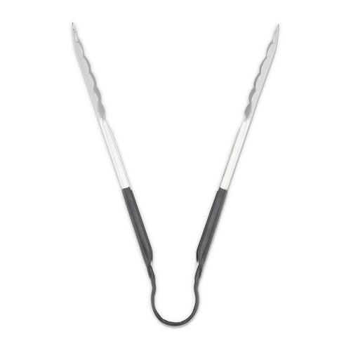 Dura-Kool Tongs can withstand temperatures up to 95°F (90° C). They have single-piece heavy-duty stainless construction that eliminates food traps for more sanitary use. It also has a spring action hinge that won't break and provides a convenient hook for storage.