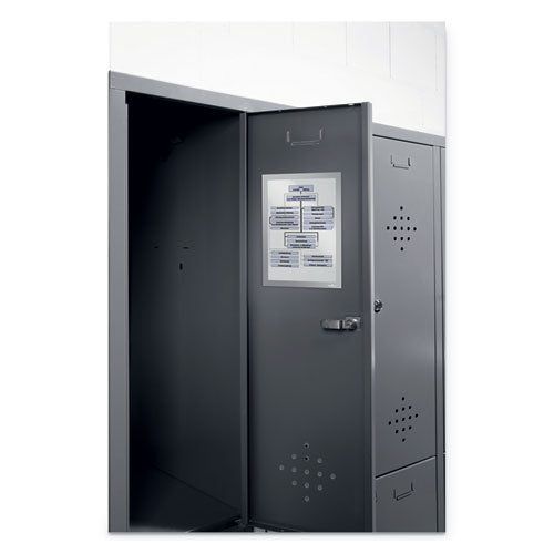 DURAFRAME® Magnetic Sign Holders from DURABLE® are the go-to solution for effortless professional signage display. Easily showcase important information on any smooth, magnetic metal surface with these professional frames, instantly grabbing attention and effectively conveying your message right where you need it. Keep your messaging up to date with the innovative flip-up magnetic frame. This unique design means you can update promotions, announcements, safety information, or directional signage without any hassle. Simply lift the frame, swap out your content, and secure it back in place on the metal surface. This keeps your signage fresh, relevant, and engaging for your employees and customers. With no bulky mounting hardware or unsightly tape, these sign holders have a clean and modern appearance. DURAFRAME's strong magnetic backing securely attaches to any smooth, magnetic metal surface, so you don't have to worry about the inserts dropping out. It can be repositioned easily, giving you the flexibility to adjust your signage as needed. Tailor your signage to fit your unique space perfectly by placing DURAFRAME in portrait or landscape orientation. Ideal for fast-paced and high-traffic environments such as retail stores, restaurants, hotels, offices, warehouses, healthcare facilities, and manufacturing plants, DURAFRAME Magnetic Sign Holders offer practicality and versatility for your signage needs.