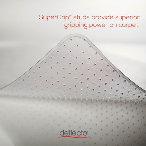 EconoMat Chair Mat offers lightweight yet durable protection for carpets up to 0.38" thick, making it ideal for moderate use in offices and home workspaces. Its easy-glide rolling surface ensures effortless chair movement, reducing strain while enhancing mobility. The studded backing keeps the mat securely in place, preventing shifting while shielding carpets from caster wear, spills, and heavy foot traffic. Made with a Free and Clear® non-phthalate, non-cadmium formula, this chair mat supports a healthier work environment without compromising clarity or durability. The smooth beveled edge allows for an easy transition from carpet to mat, ensuring a seamless and professional workspace setup.