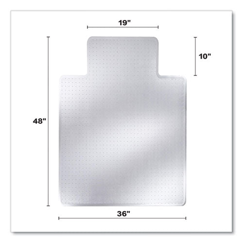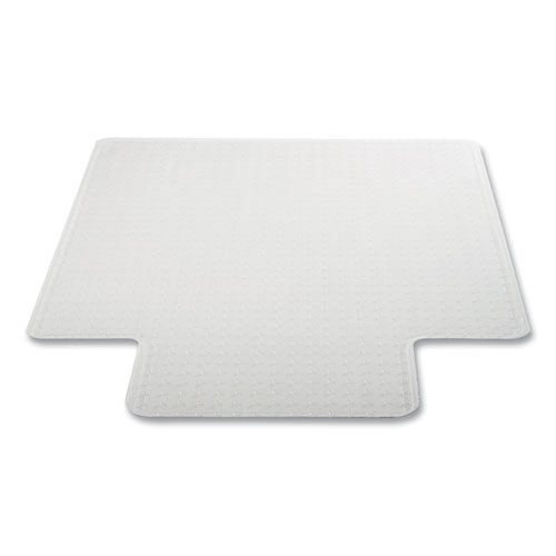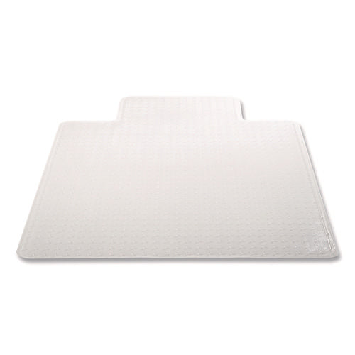 Lightweight, durable performance for moderate use on carpets up to 0.38" thick. Easy-glide rolling surface provides effortless chair movement. Studded design secures mat from moving while protecting carpet from caster wear, spills and heavy traffic. Free and Clear® non-phthalate, non-cadmium formula promotes a healthy work environment while offering exceptional clarity and durability. Smooth beveled edge for easy carpet-to-mat transition.Note: This is a non-returnable item.