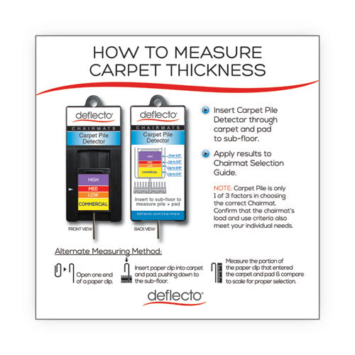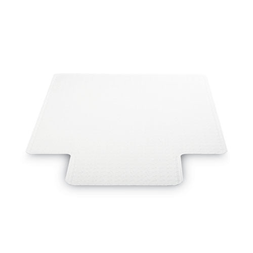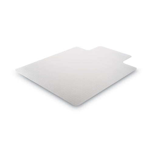 EconoMat Chair Mat offers lightweight yet durable protection for carpets up to 0.38" thick, making it ideal for moderate use in offices and home workspaces. Its easy-glide rolling surface ensures effortless chair movement, reducing strain while enhancing mobility. The studded backing keeps the mat securely in place, preventing shifting while shielding carpets from caster wear, spills, and heavy foot traffic. Made with a Free and Clear® non-phthalate, non-cadmium formula, this chair mat supports a healthier work environment without compromising clarity or durability. The smooth beveled edge allows for an easy transition from carpet to mat, ensuring a seamless and professional workspace setup.
