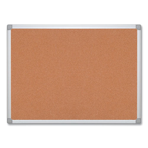 Bulletin board is an efficient and versatile solution for visual communication. Decorative and practical, it's a tool that serves as an important aid to sharing information. Manufactured using post-consumer and post-industrial waste, it's also nearly entirely recyclable. Real cork surface is extremely durable and resilient. Sturdy aluminum frame features an easy to mount four-corner system. Hardware included.Package Includes: Mounting Kit