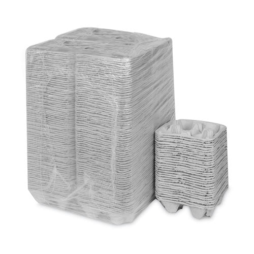 EarthChoice® fiber cup carriers are extremely durable and made with 100% recycled paper. Made with globally sourced materials. Ready to use with no set up required. Makes transporting on the go beverages simple and mess free. Perfect way to securely carry food and drinks in one handy tray! Handles a full range of cup sizes. Tray section is large enough for things like a hot dog or french fries keeping them secure with the elevated sides.