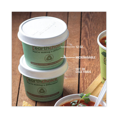 Renewable, versatile, and dependable. These containers are microwavable, which makes them great for a variety of hot or cold foods. Each soak-through-resistant cup is color-coded for easy size identification to help lessen the chance of operator mistakes and speed up food assembly. Cups will not melt or deform, which makes them ideal for delivery and takeout. Perfect for hot or cold foods such as soup, pasta salad, and mac and cheese. Made from 100% annually renewable resources and meet ASTM standard D6868 or D6400. Commercially compostable only. Facilities may not exist in your area. Not suitable for home composting.