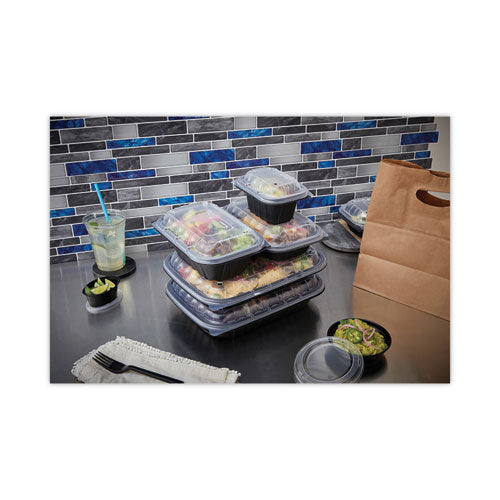 These takeout containers are the perfect combination of economical and sustainable, and are designed with delivery in mind! They're sturdy, stackable, and soak-through-resistant to grease and moisture. The optional vented lids (sold separately) make them ideal for hot and crispy menu items. The bases are made with 50% less plastic than standard containers in a range of sizes for quick food assembly and trouble-free take-out.