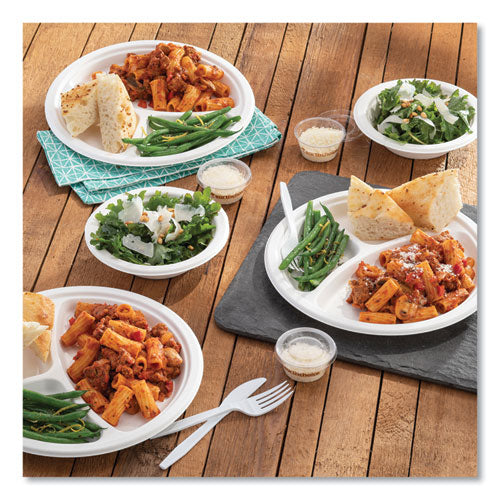 You need the right food-packaging products to keep your operations running smoothly and to keep your customers happy. Choose EarthChoice fiber-blend bagasse dinnerware to help meet your sustainability goals. They're compostable yet durable, super sturdy, and moisture-resistant. Commercially compostable only. Facilities may not exist in your area. Not suitable for home composting.