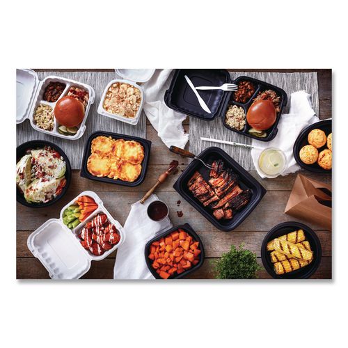 EarthChoice SmartLock Microwavable MFPP Hinged Lid Container, 3 Compartments, 9 x 9 x 3.1, White, Plastic, 120/Carton