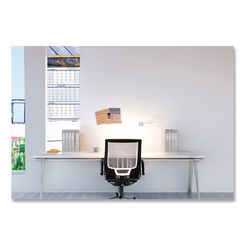 Each page features a unique scenic image and an inspirational quote. Three-month per page layout with current month unshaded to contrast with past month and next month. Unruled daily blocks for planning on all three months. Strong wire-binding firmly keeps the pages together and in place. Includes a sturdy wire hanger to easily hang the calendar on the wall and a full-year reference calendar on each page. Made entirely of recycled materials.Note: This is a non-returnable item.