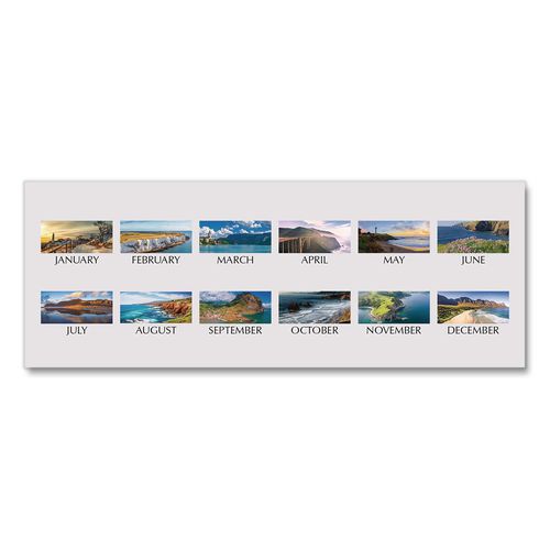 This desk pad calendar features a unique coastline image on each page, Julian dates and days remaining, note space, and full-year reference calendar on each page for long-term planning. Strong, reinforced black leatherette corners help keep pages in place and protected. It's perfect for an office desk or any other environment that calls for organization. Made entirely of recycled materials.Note: This is a non-returnable item.