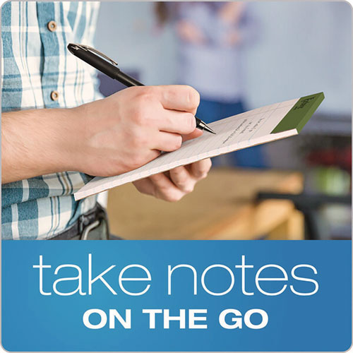 Dual-purpose writing pad and desktop printer paper. Ruled on front, blank on back. Microperforated. Clean, easy sheet removal. No margin for more usable writing space. Paper made from post-consumer recycled fiber.