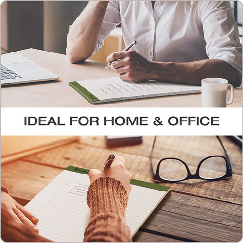 Dual-purpose writing pad and desktop printer paper. Ruled on front, blank on back. Microperforated. Clean, easy sheet removal. No margin for more usable writing space. Paper made from post-consumer recycled fiber.