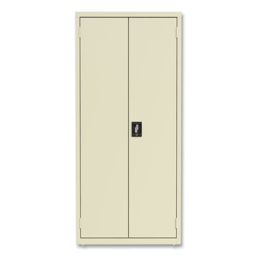 Everyday steel storage cabinets are a concealed-storage solution that's useful in a variety of environments: homes, garages, basements, businesses, schools, restaurants, hotels, hospitals and more. Space-efficient and flexible, these cabinets feature an attractive but durable design that integrates easily nearly anywhere. Fully welded steel construction keeps your essential materials protected, organized and secure. Smooth, nonporous, baked-enamel finish protects the steel from corrosion while ensuring the interior and exterior are always easy to clean. Recessed handles provide a low-profile appearance that won't get in the way. Three-point locking system with lock rods helps ensure your items remain secure when you lock them away. Lock cores are removeable, enabling all-keyed-alike convenience when employing more than one cabinet. All shelves support up to 180-lb, and all but the fixed bottom shelf adjust in 1-inch increments, allowing you to configure your cabinet to suit your needs.