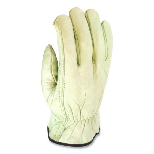 Economy Grade Top-Grain Cowhide Leather Work Gloves, Gunn Cut, Wing Thumb, Medium, Tan, Pair