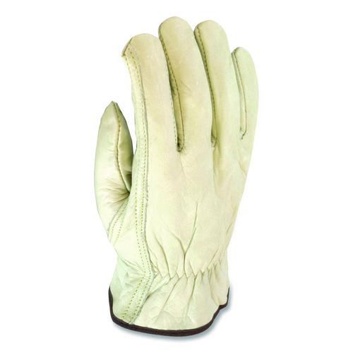 Durable, top-grain cowhide leather gloves deliver excellent abrasion resistance and breathability, making them ideal for construction, machine operation, light-duty welding, farming, ranching and many other general applications. Ergonomic keystone-thumb design reduces hand fatigue while offering superior dexterity. Gauntlet-cuff design features an elastic closure, sewn inside the glove, for both wearing comfort and additional safety.
