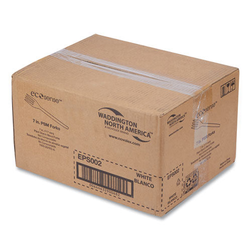 EcoSense Renewable Plant Starch Cutlery, Fork, Plastic, Cream, 50/Pack, 20 Packs/Carton