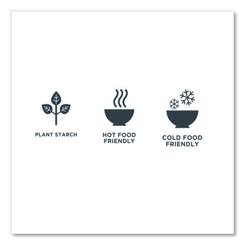 Plant starch cutlery is made with 70% renewable resources. Heat tolerant up to 200°F. Reinforced, ribbed handles provide extra strength. Not compostable.