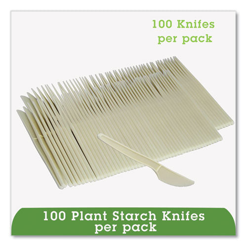 EcoSense Renewable Plant Starch Cutlery, Knife, Plastic, Cream, 50/Pack