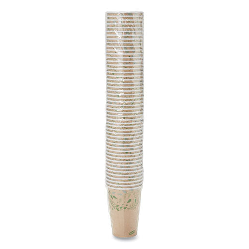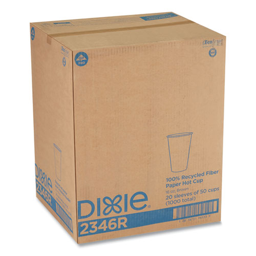 Dixie EcoSmart 100% recycled fiber hot/cold cups are made of post-consumer recycled fiber, designed to help you meet your sustainability goals while providing customers with attractive, sustainable disposable packaging. These cups are both recycled and recyclable and feature a unique kraft paper design that looks great. These dual-purpose paper cups are not only great for hot beverages, but they also have an exterior coating that makes them great for cold drinks.