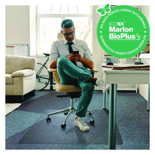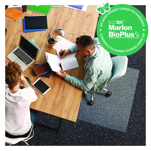 Ecotex Marlon BioPlus Polycarbonate Chair Mats provide the ultimate in quality, function and durability. Produced using a “Mass Balancing bio-circular” process with both the resin and chair mat manufacture ISCC certified. (International Sustainability & Carbon Certification). With twice the impact strength of PVC, the perfectly flat and rigid material provides an ergonomic easy glide surface for caster based chairs, which can reduce leg fatigue and lower back strain. Guaranteed not to crack, curl, discolor or smell. Free from phthalates, PVC and toxic chemicals. An ideal choice for people with allergies. Manufactured in the UK using 100% renewable energy, including solar and wind power. The resin manufacture is climate neutral with a 100% reduction in carbon emissions. Contains 89% non-fossil based bio-circular material, such as used cooking oil. 100% recyclable. Marlon BioPlus mats lie perfectly flat from delivery for immediate use.