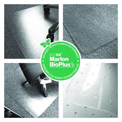 Ecotex Marlon BioPlus Polycarbonate Chair Mats provide the ultimate in quality, function and durability. Produced using a “Mass Balancing bio-circular” process with both the resin and chair mat manufacture ISCC certified. (International Sustainability & Carbon Certification). With twice the impact strength of PVC, the perfectly flat and rigid material provides an ergonomic easy glide surface for caster based chairs, which can reduce leg fatigue and lower back strain. Guaranteed not to crack, curl, discolor or smell. Free from phthalates, PVC and toxic chemicals. An ideal choice for people with allergies. Manufactured in the UK using 100% renewable energy, including solar and wind power. The resin manufacture is climate neutral with a 100% reduction in carbon emissions. Contains 89% non-fossil based bio-circular material, such as used cooking oil. 100% recyclable. Marlon BioPlus mats lie perfectly flat from delivery for immediate use.