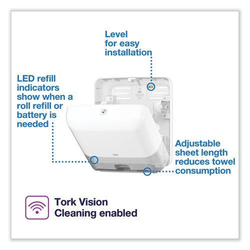 Tork® Elevation® Matic® Hand Towel Roll Dispenser with Intuition® Sensor gives your guests the ultimate no-touch hand drying experience. The dispenser is hygienic because guests touch only the towel they use. The adjustable towel length allows you to reduce towel consumption. Simply, select the towel size that's right for your business. It offers reliable performance and intuitive maintenance. Dispenser has a functional, modern design that makes a lasting impression on your guests.