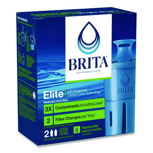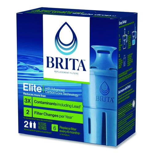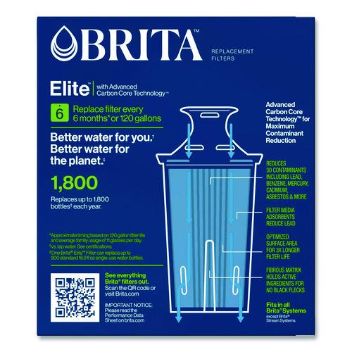 Keep tap water healthier and tasting better longer with Brita Elite Pitcher Replacement Filters. Made with pleated filter technology for three times longer life compared to 40gal filters. Elite™ replacement filters reduce lead, asbestos, and cadmium impurities that can adversely affect your health over time (substances reduced may not be in all users' water). Change the Elite™ filters every 120 gal, about every six months for the average family, for best performance. The pull top cap on these filters makes insertion and removal easy. With activated carbon to reduce chlorine taste and odor, these filters deliver great-tasting water and maintain a healthy level of fluoride, an additive in water (applies to fluoridated municipal tap water). The fibrous matrix in the filter holds active ingredients in place so no black flecks appear in your water. One Elite™ Filter can replace 900 standard 16.9 oz water bottles.Note: This is a non-returnable item.