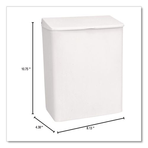 Provide a discreet place for guests to dispose of feminine hygiene products with this wall-mounted disposal unit. White enamel finish lends a crisp, clean look and the flip-up lid keeps items neatly tucked away. Provides access to disposal liners from the bottom, allowing for easy, mess-free removal.